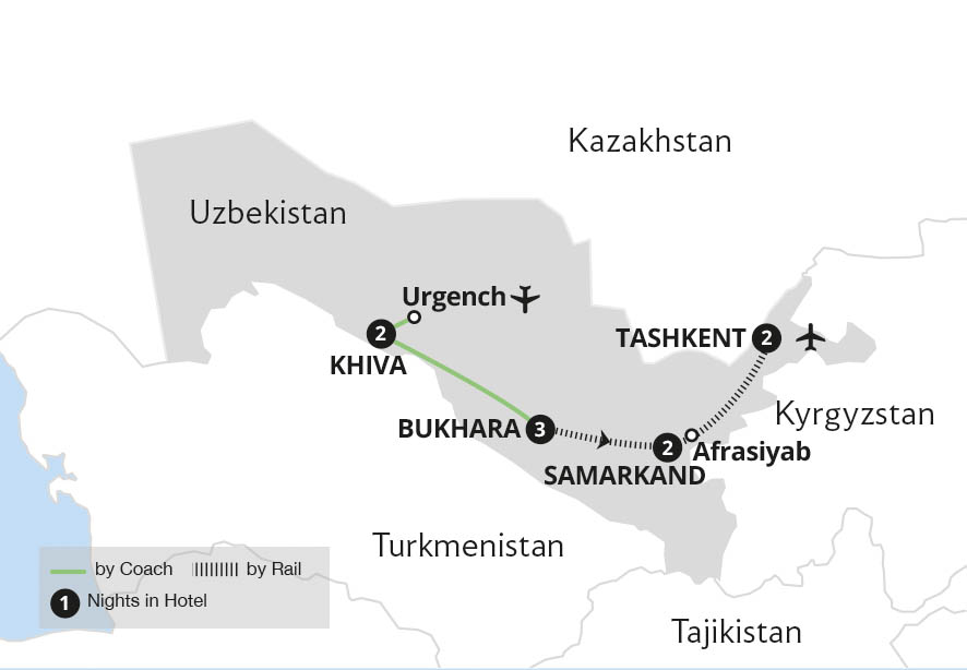 Experience India's breathtaking temples, join a tiger-spotting safari in the Ranthambore National Park, or discover beautiful Kerala on one of our India rail holidays. Discover the treasures of China and cruise along the Yangtse River, or explore the fantastic landscapes and historic trading routes of Uzbekistan and the Ancient Silk Road.