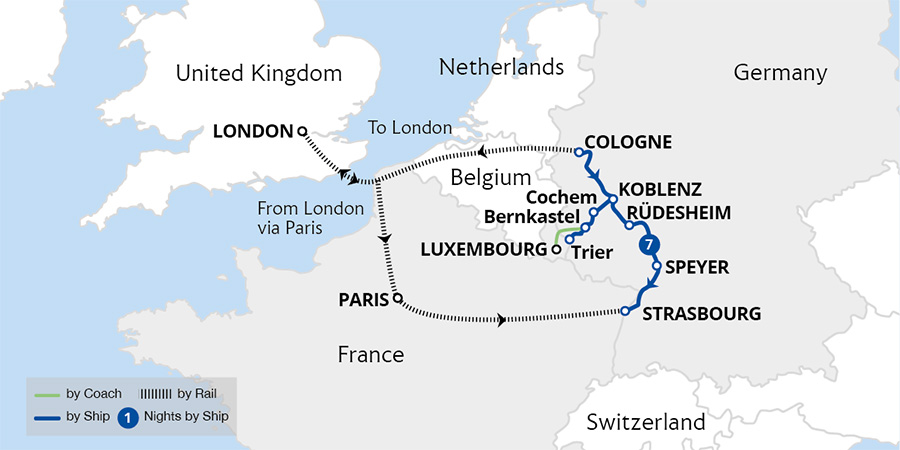 Combine an iconic rail trip on the Jungfrau Railway to the 'Top of Europe' from the alpine resort town of Interlaken with a 7-night luxury cruise through the glorious Moselle and Rhine. From Interlaken's stunning lake and mountain setting, we board the MS Amadeus Cara, and cruise two of Europe's celebrated rivers - the meandering Moselle...