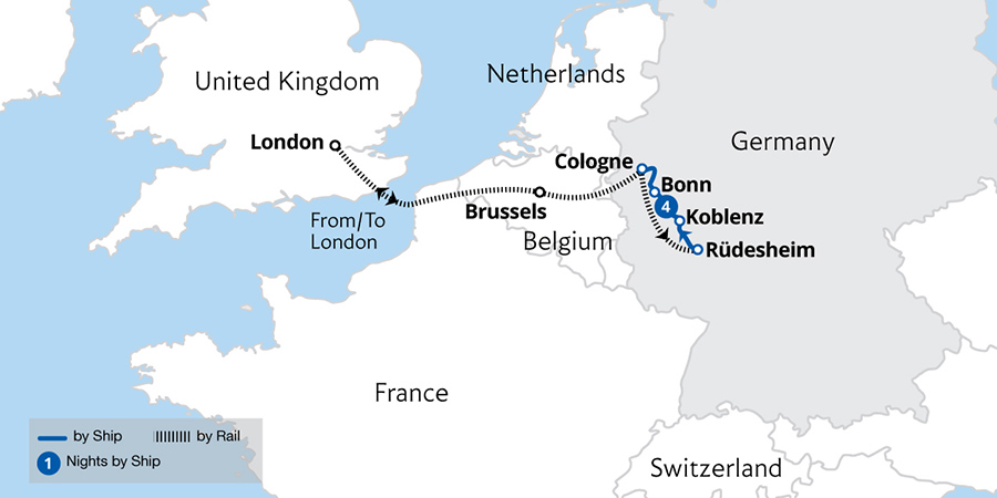 This beautifully scenic, easy-paced cruise takes us to the towns and cities of the River Rhine. Sailing by enchanting landscapes, discover Heidelberg and Strasbourg along with the sensational vistas of the UNESCO-listed Rhine Gorge. From Cologne, we sail south to explore the town of Koblenz, enjoy a guided tour of Heidelberg, and wander...