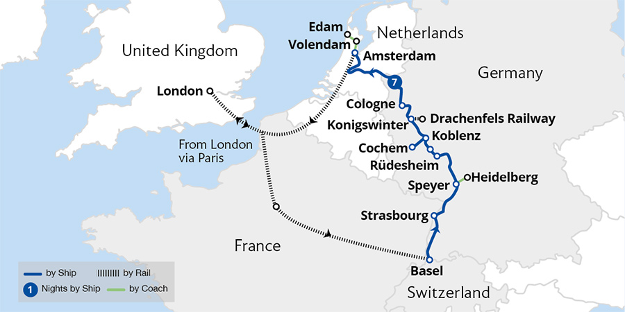 Embark on a scenic river cruise from Switzerland to Amsterdam,
